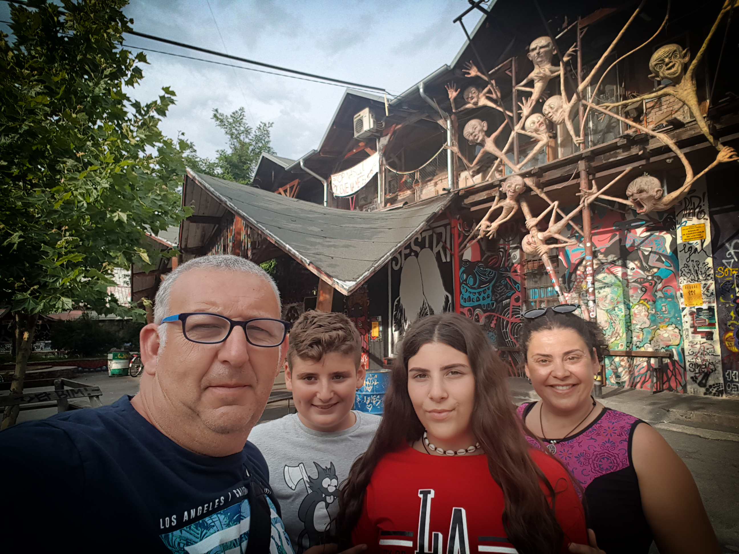 Cogimos nuestras bicis y nos fuimos para tener un primer contacto con la ciudad, el primer sitio que visitamos fue el barrio de Metelkova un área urbana que une el ambiente más artístico, cultural, creativo, intelectual y alternativo situado entre los edificios de un antiguo cuartel militar del ejército esloveno de la antigua Yugoslavia. Por la noche se apodera del lugar el bullicio de los bares, las discotecas y los espacios para conciertos, especialmente los fines de semana. Dentro de este barrio está el único hotel que te hará sentir como estar en la cárcel, la singularidad de este alojamiento radica en que sus habitaciones se ubican en las antigüas celdas de la prisión que había en el cuartel manteniendo incluso las puertas enrejadas, pero su interior ahora está decorado para convertir los antiguos habitáculos de castigo y aislamiento en acogedoras habitaciones de descanso. Nos sorprendía todo a cada paso, los grafitis, colores, esculturas, un barrio en continuo cambio.