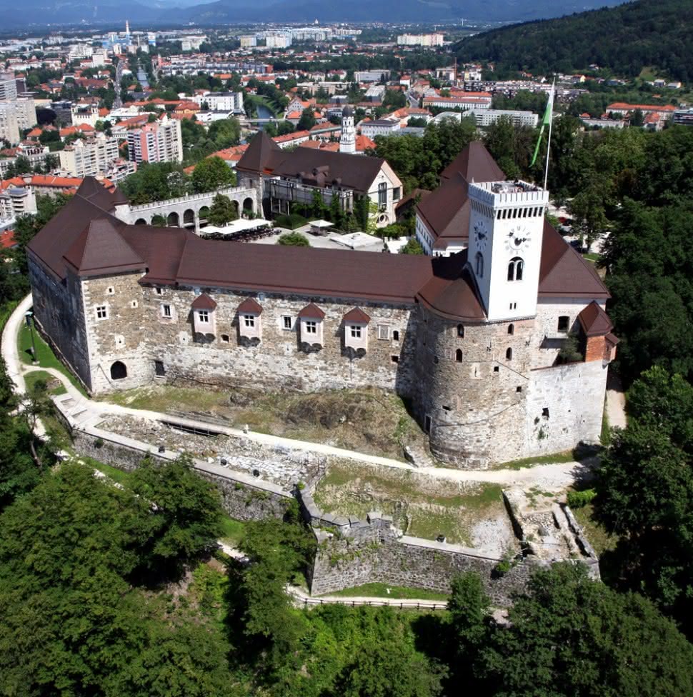 El emblema de la capital eslovena es sin duda alguna su famoso castillo, el Ljubljanski grad, de origen medieval y situado en una colina que goza de una céntrica ubicación en el medio de la ciudad. Esto le otorga unas vistas sobre toda la capital que ya de por sí valen la pena la subida hasta allí. Llegar hasta el castillo es muy fácil: es constantemente visible desde cualquier punto de la capital y existen varios senderos que serpentean hasta los pies del castillo. Sin embargo, para quienes no tengan los ánimos de hacerlo a pie, pueden tomar el histórico funicular que une el castillo con la base de la pequeña montaña.