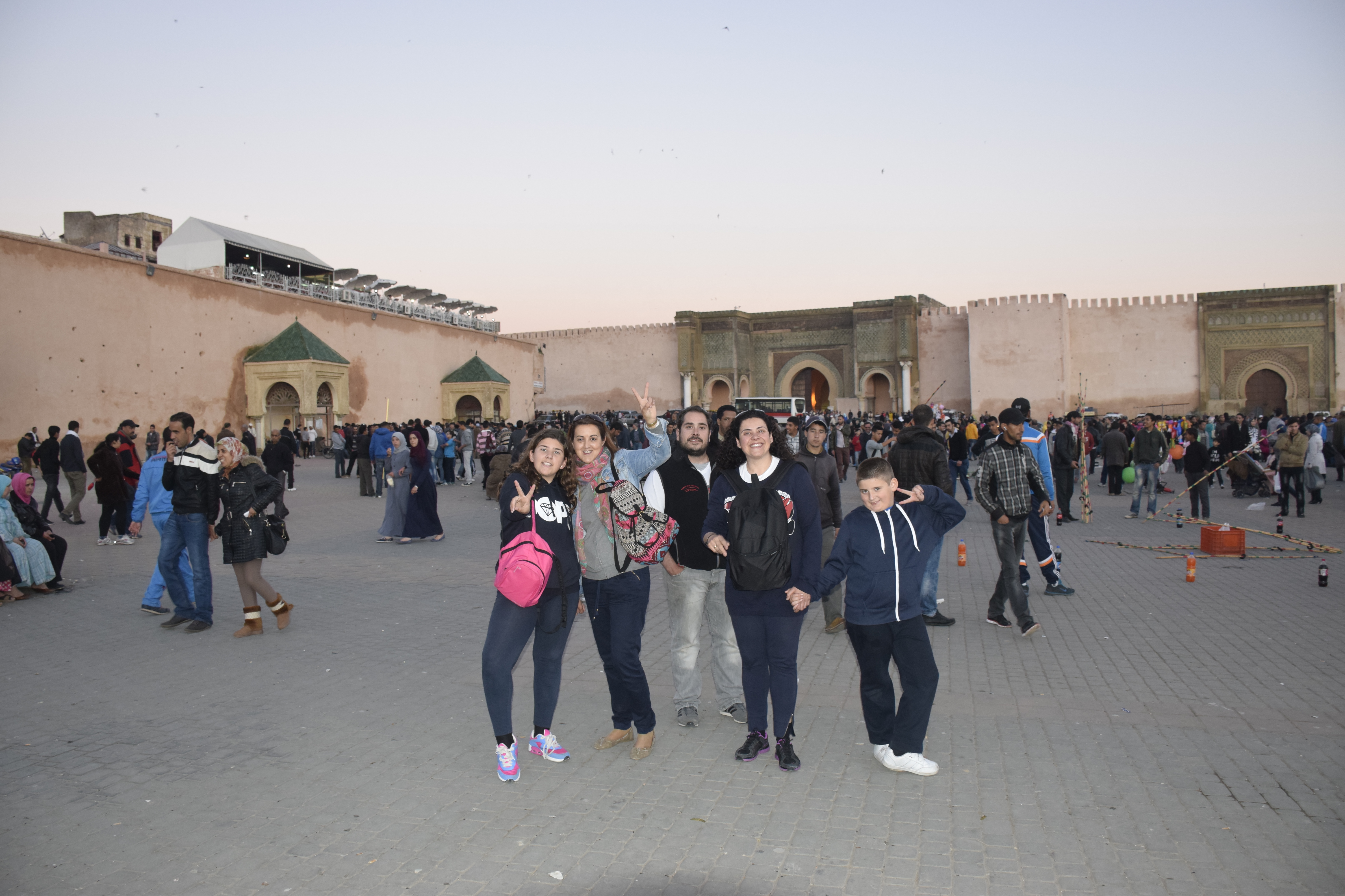 Llegamos a sobre las 15.30h, comer corriendo en el aparcamiento de latas y embutidos que traemos, dejar las cosas en la kasbah y a dar una vuelta al zoco, comprar y pasear por esas callejuelas que tanto nos gustan. Mequínez (en árabe: مكناس, en bereber: Meknas,) es una ciudad situada al norte ubicada al pie de las montañas con una población de 950.000 habitantes, es la capital de la región de Mequinez-Tafilalet, siendo una de las cuatro ciudades imperiales de Marruecos. Cuando vayas al zoco no dejes de visitar la puerta Bab Mansour construida en 1732 es la más grande de Marruecos y de África del Norte y esta situada en la plaza principal y por donde podrás acceder a un autentico zoco marroquí, te aconsejamos que te pierdas, que te adentres en sus callejones con toda seguridad, disfruta de la sensación ademas de comprar a precios mucho más razonables que en otros zocos más turísticos como los de Marrakech o Fez.