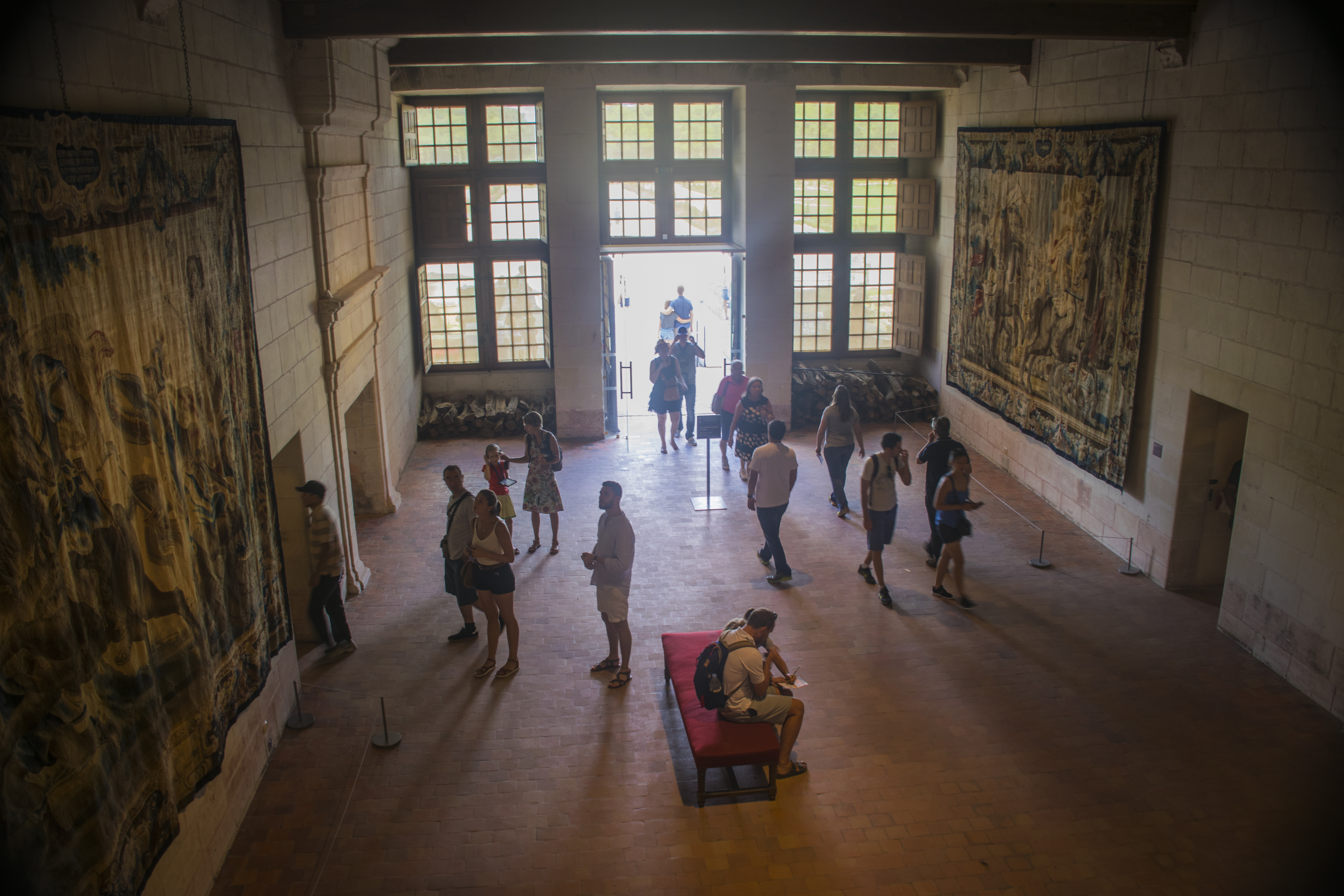 En la entrada del Castillo de Chambord hay un pequeño control de seguridad en el que hay que enseñar las mochillas. Hay un folleto del castillo en varios idiomas, que son estupenda para la visita por libre que informa de los elementos esenciales que veremos durante la visita en la que te marcan las tres plantas del castillo y las diferentes salas. El castillo consta de 440 habitaciones, 365 chimeneas, y 84 escaleras en su construcción participó Leonardo da Vinci.