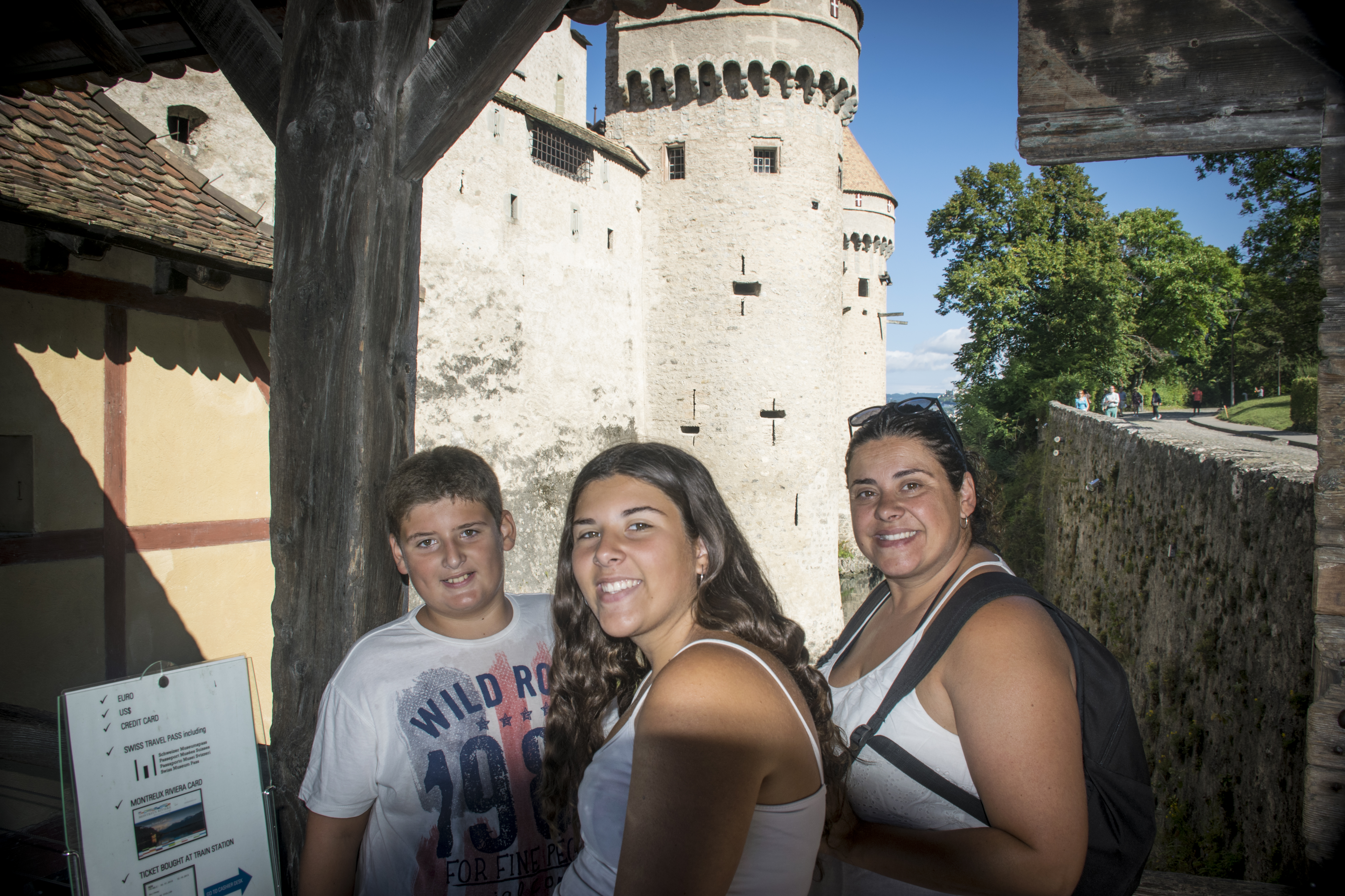 Por la mañana nos dirigimos hacia el Castillo de Chillón, pudimos aparcar en los aparcamientos que hay en la carretera al lado del castillo. Antes de entrar dimos una vuelta por los alrededores desde donde se obtienen unas vistas y unas perspectivas preciosas del castillo desde el lago y su embarcadero. El precio de entrada era de 12’50 francos.