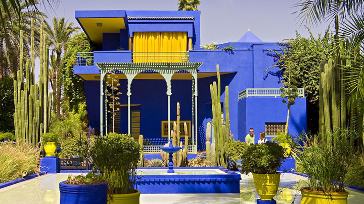 - Los Jardines de Majorelle, este jardín botánico se encuentra situado en la ciudad nueva, en el barrio del Guéliz. Este bello jardín fue diseñado por el pintor francés Jacques Majorelle, ahora su dueño es Yves Saint-Laurent. Se trata de una reserva natural de cactus, bambúes, buganvillas y muchas otras plantas que rodean un chalet de estilo art decó, de un color azul cobalto.