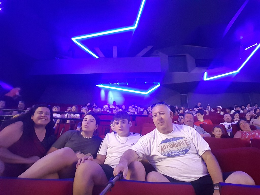 Familia: – La Máquina del Tiempo, superdivertido nos montamos en esta atracción a bordo de un tren sentado en un bater con gafas 3D y rodeado del mundo de los Rabbids, recorrimos momentos destacados de la historia, desde la prehistoria hasta la conquista del espacio, decorados animados y proyecciones 3D, una experiencia que nos sumergió en la tecnología 5D. No paramos de reir.