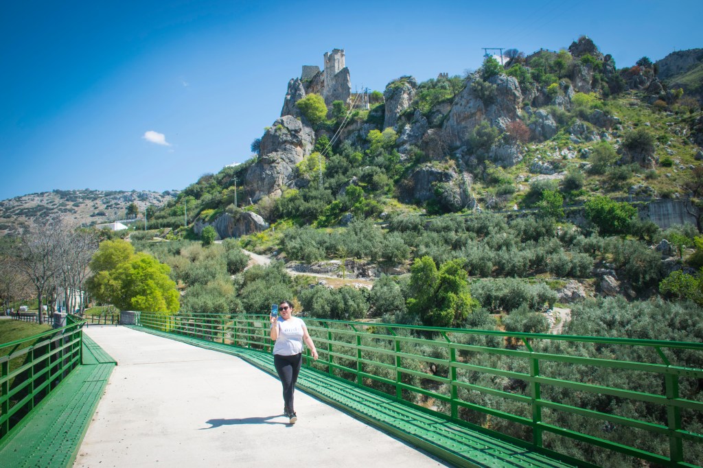 La Vía Verde de la Sierra en Cádiz, dispone en lo que era la antigüa estación de tren de hotel, bar, restaurante, servicios, aparcamientos y alquiler de bicicletas. Fue la primera toma de contacto con una V.V., decidimos realizarla desde Coripe hacia Olvera, fuimos con nuestra autocaravana y pudimos dormir al lado de la Ermita de Ntra. Sra. de Fátima y un monumento natural como es el Chaparro de la Vega, un ejemplar de encina, de más de 200 años y de grandes dimensiones (13 metros de altura y 30 de diámetro), situado a 3km de la estación de Coripe, donde se celebra la romería de la Virgen de Fátima el segundo domingo de Mayo. El tramo que realizamos en bicicleta, fue precioso, con túneles, el río acompañándonos, las montañas y puentes. Pudimos disfrutar del centro de interpretación y observatorio ornitológico «Peñon de Zaframagón», el Peñón de Zaframagón, a 8 km, siguiendo la vía verde hacia Olvera, es un grandioso escarpe calizo de 584 metros. El elemento más significativo de su relieve lo constituye la Garganta del Estrechón, profundizada por el río Guadalporcún. En ella se encuentra la mayor colonia de buitres leonados de Andalucía. El paisaje es Impresionante.