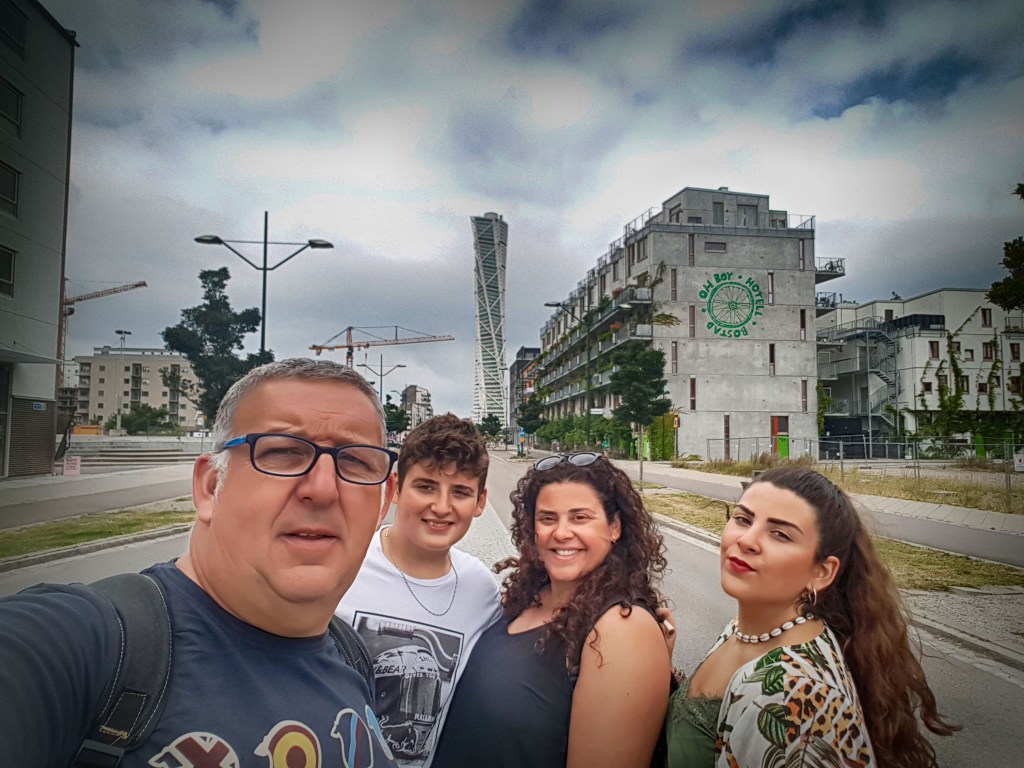 Seguimos paseando por grandes avenidas limpias y ordenadas, nuestro siguiente propósito es ver una de las cosas mas emblemáticas de esta ciudad y que puede divisarse desde cualquier punto, la torre «Turning Torso» un rascacielos neofuturista que se ha convertido en el edificio más alto de Escandinavia. El proyecto fue diseñado por Santiago Calatrava, arquitecto, ingeniero estructural, escultor y pintor español, su inauguración tuvo lugar el 27 de agosto de 2005. La torre alcanza una altura de 190 metros con 54 plantas. No se puede visitar ya es un edificio privado en el coexisten viviendas de lujo y oficinas. Las oficinas se sitúan en los dos primeros cubos de la construcción, con una superficie total de 4000 metros cuadrados. Los cubos tres a nueve albergan 147 viviendas cuya superficie varía entre los 45 y los 190 metros cuadrados. Las dos últimas plantas (desde las que se puede ver Copenhague) están dedicadas a reuniones de negocios, encuentros políticos y visitas oficiales.