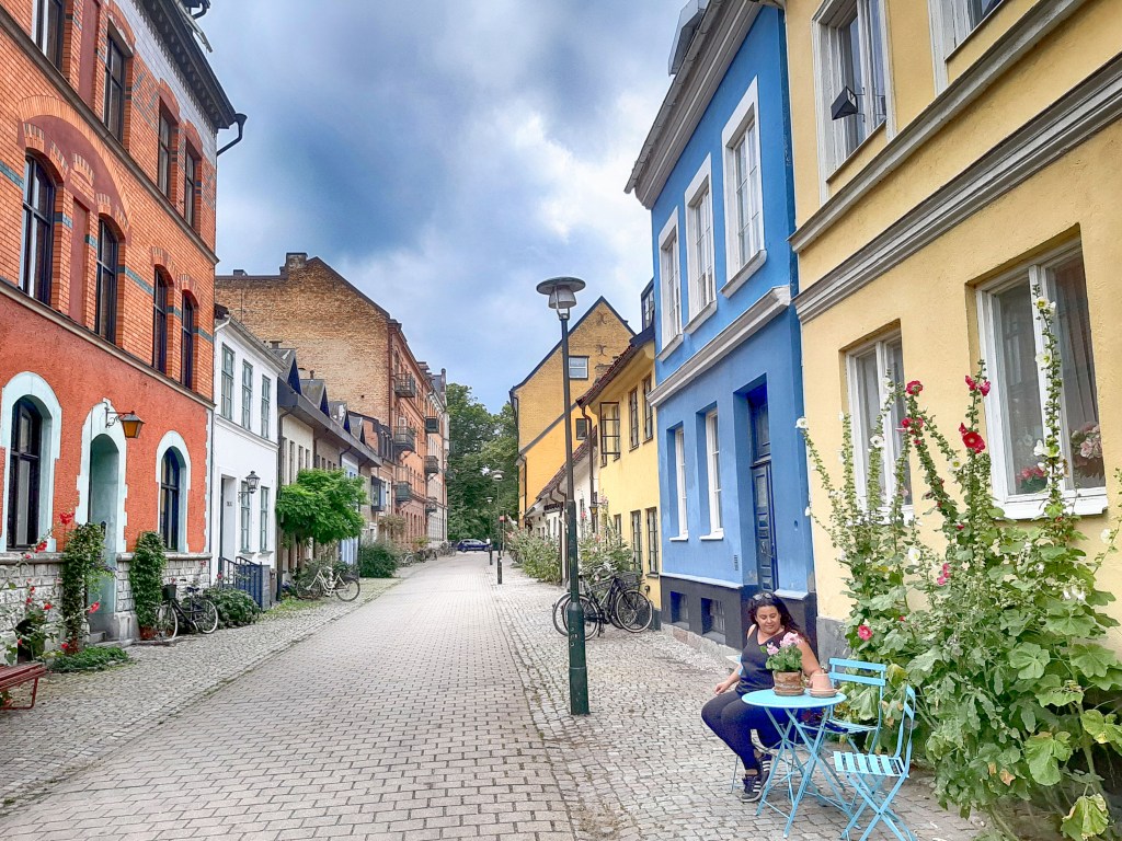 Una foto en «Jakob Nilsgatan», algo imprescindible. Hay una calle que no puedes perderte en el Gamla Staden esta es Jakob Nilsgatan. Los colores de las fachadas de sus casas son espectaculares a ellos les sumas las flores es el lugar perfecto para la foto «INSTAGRAMERS»