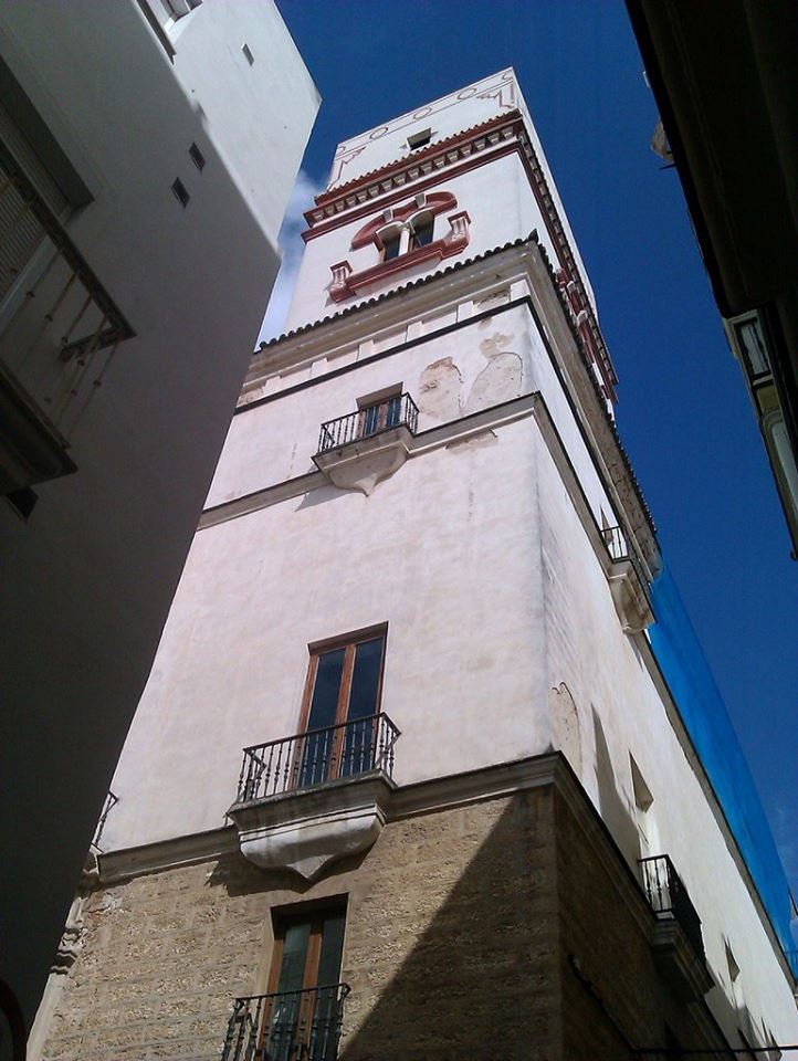 La Torre Poniente, también conocida como la Torre del Reloj, forma parte de la propia catedral, es un estupendo mirador de toda la ciudad de Cádiz. Con 74 metros de altura desde donde se obtienen una de las mejores vistas panorámicas y además de 360 grados.