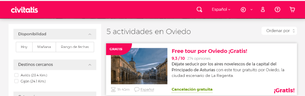 Puedes hacer la visita a Oviedo por libre con las indicaciones que te damos aquí, pero si quieres empaparte de la historia, curiosidades y costumbres de la ciudad lo mejor es reservar un free tour gratuito por la ciudad puedes reservarlo en rutas gratis en Civitatis.