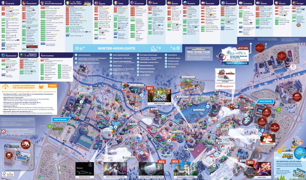 *Cuando llegues a Europa Park te entregarán un folleto con el mapa del parque y todos los espectáculos de ese día junto con sus horarios. Así que te aconsejo que dediques unos minutos a planificar la jornada en base a eso. Organiza la visita con los horarios de los shows. Europa Park dispone de varios shows durante el día que son bastante buenos. Te recomendamos elegir los que más te gusten y organizarlos dentro de tu itinerario.